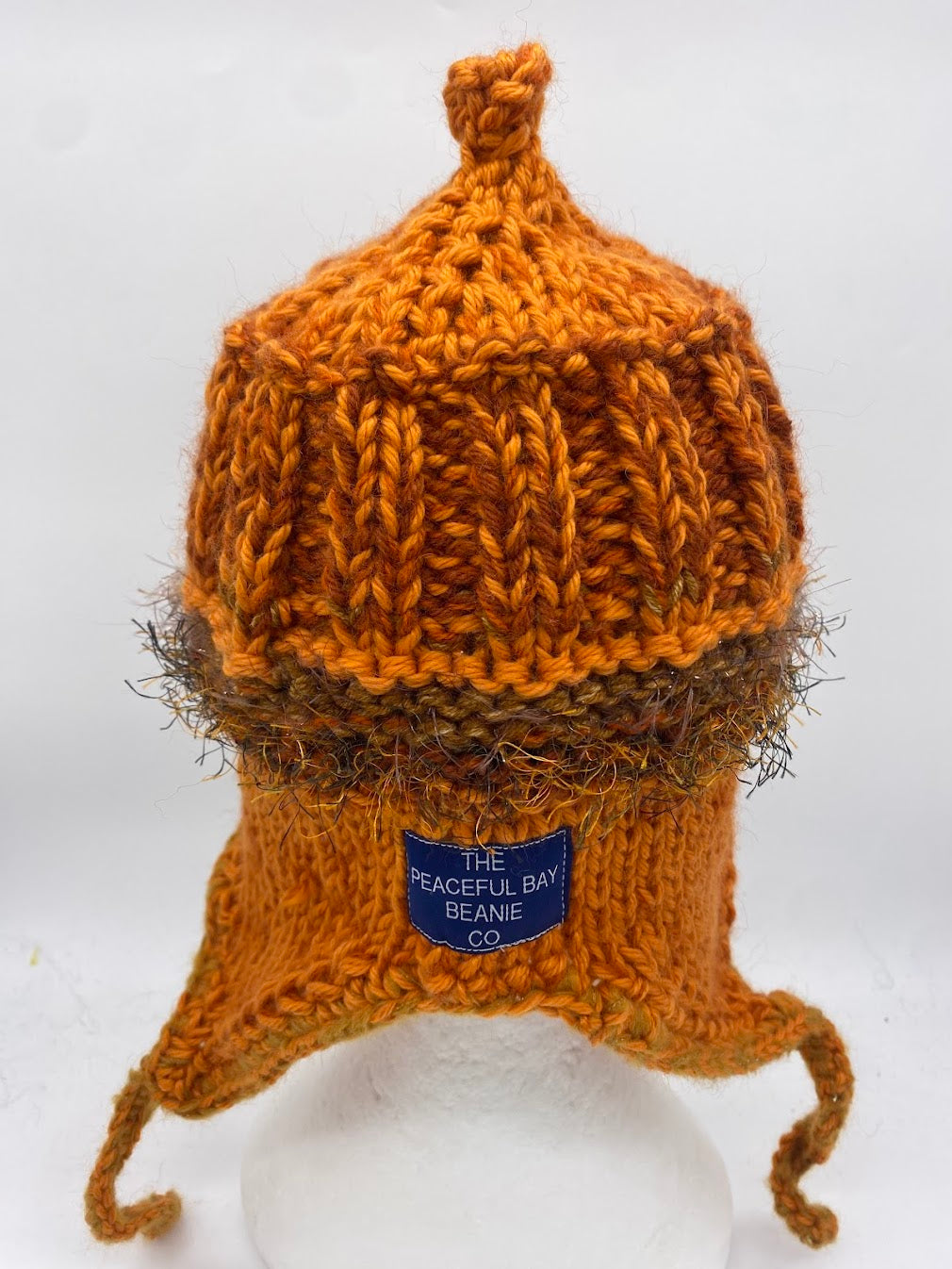 A Coastal beanie is created using a 100% Australian wool as its main colour with a mixture of contemporary yarns. It features ear flaps, a band of garter stitch and rib.